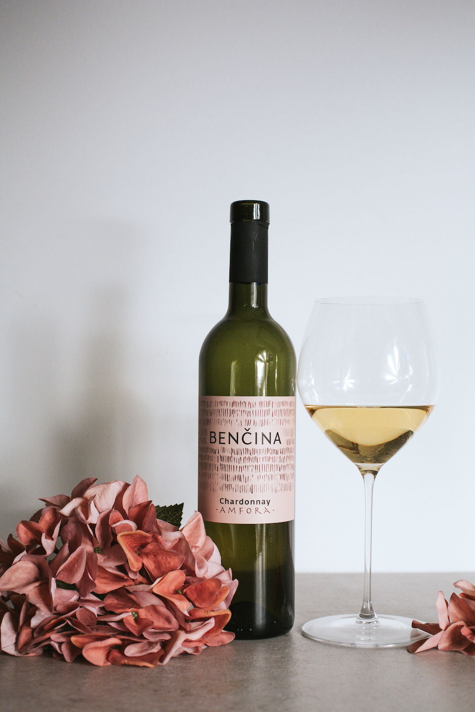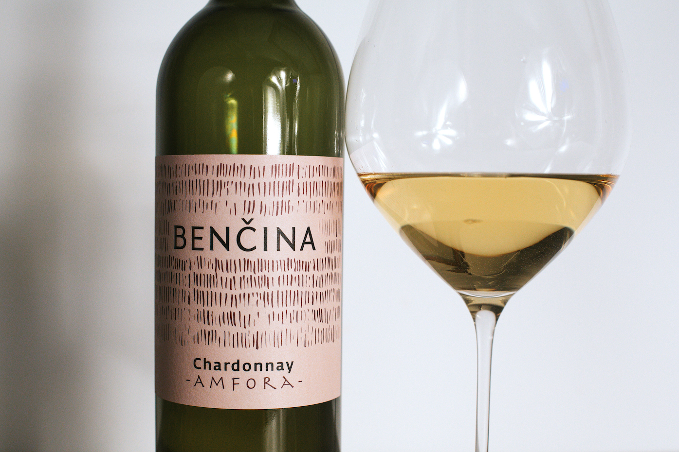 Benčina’s Chardonnay Amfora displays a crystal, golden yellow colour and dense texture.