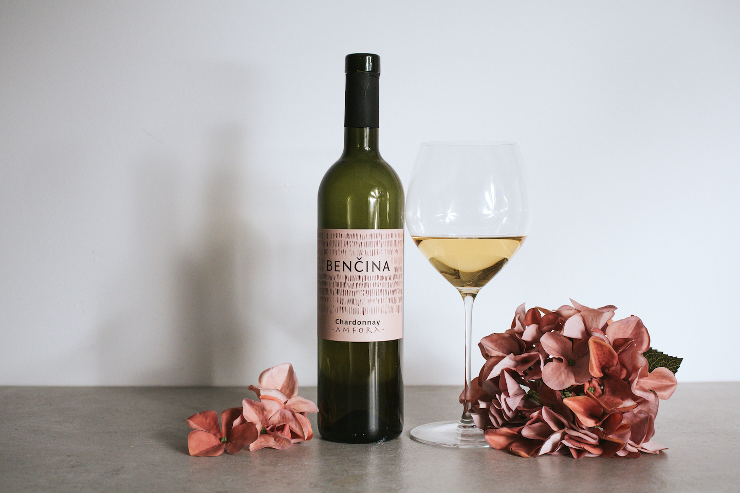 Benčina’s Chardonnay Amfora displays a crystal, golden yellow colour and dense texture.
