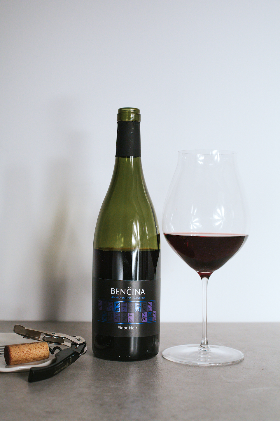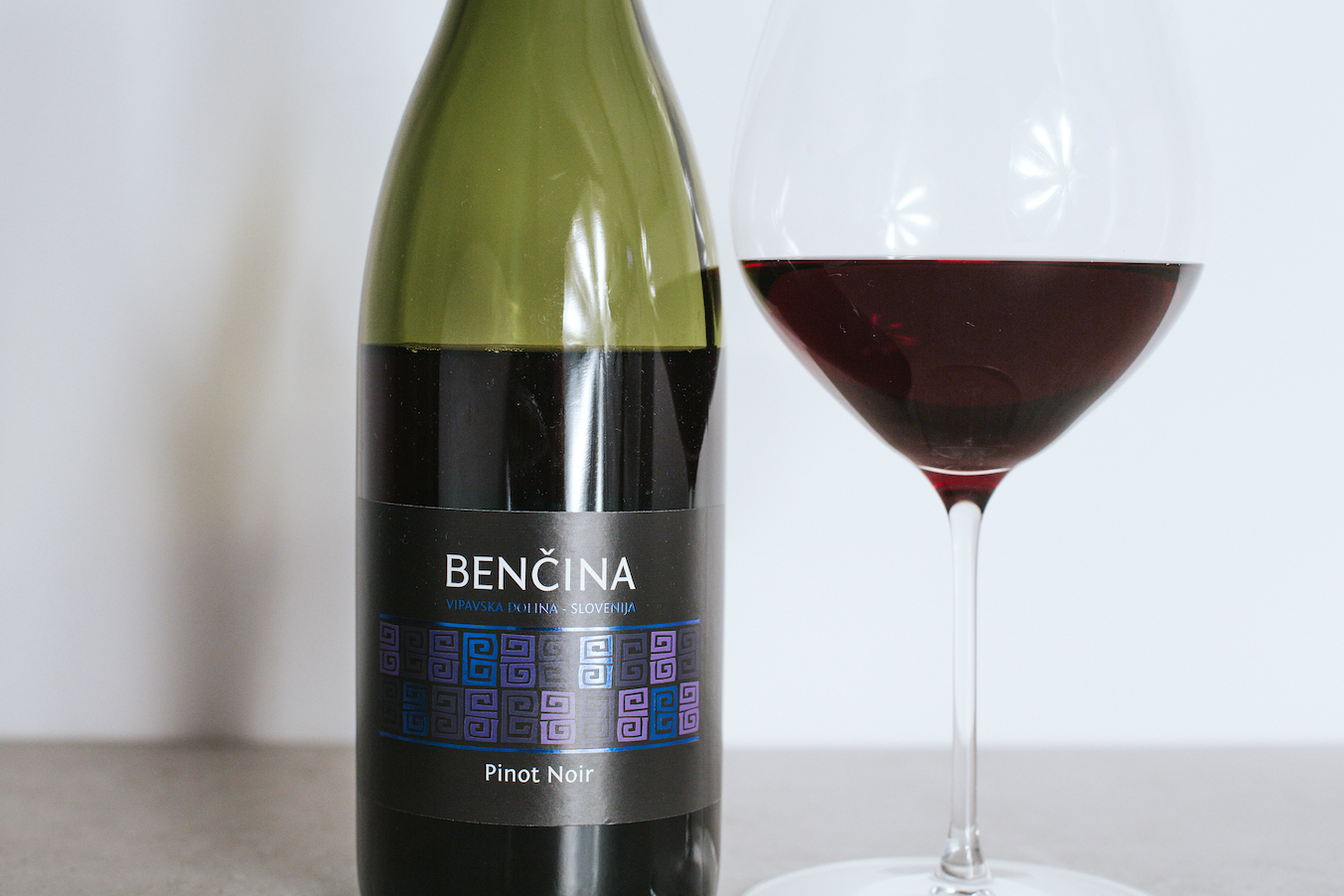 Benična’s Pinot Noir displays a translucent, ruby red colour with dense texture.