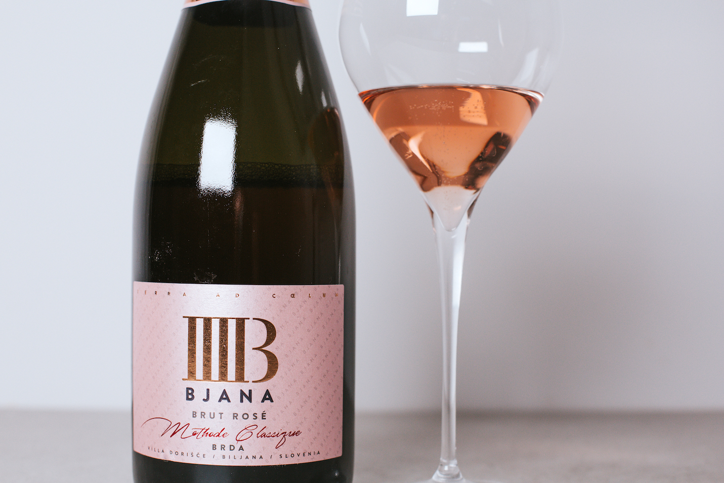 Their Brut rose consists of 75 – 85 % Pinot noir and 15 to 25 % Rebula. Grapes are hand-harvested and directly pressed. The juice ferments and is then bottled with liqueur de tirage to start secondary fermentation and ageing on lees for at least two years – with the average being close to thirty months – before finally being disgorged and finally presented to the market.