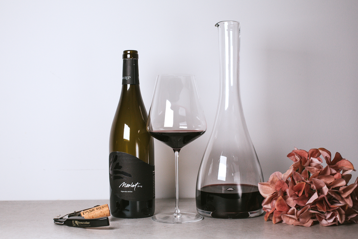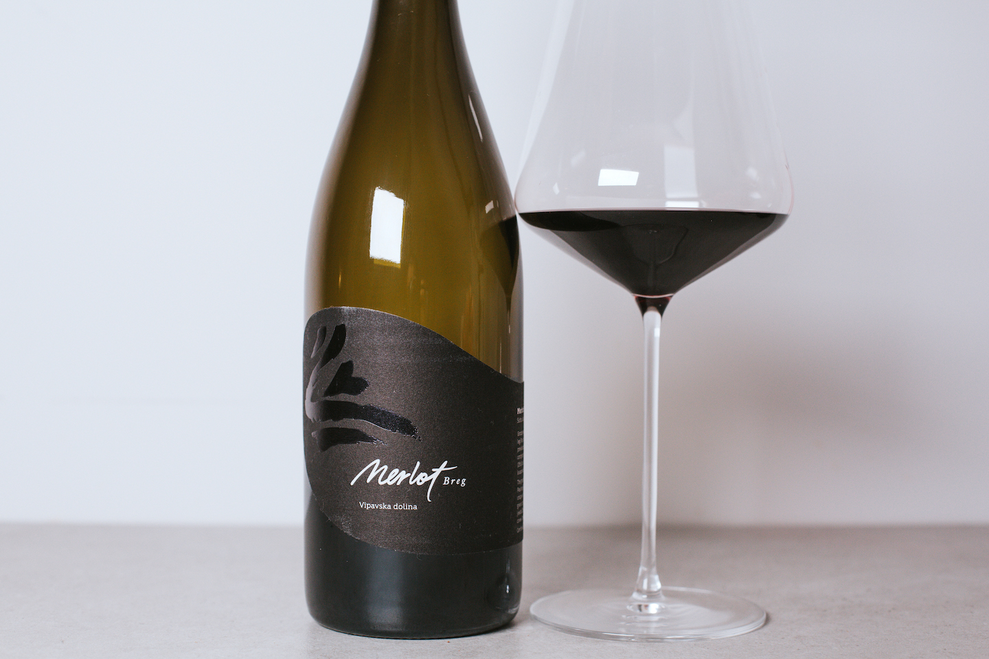 Merlot Breg shows a deeper ruby red colour with a translucent edge. The twist stains the walls of the glass and leaves slowly slipping tears.
