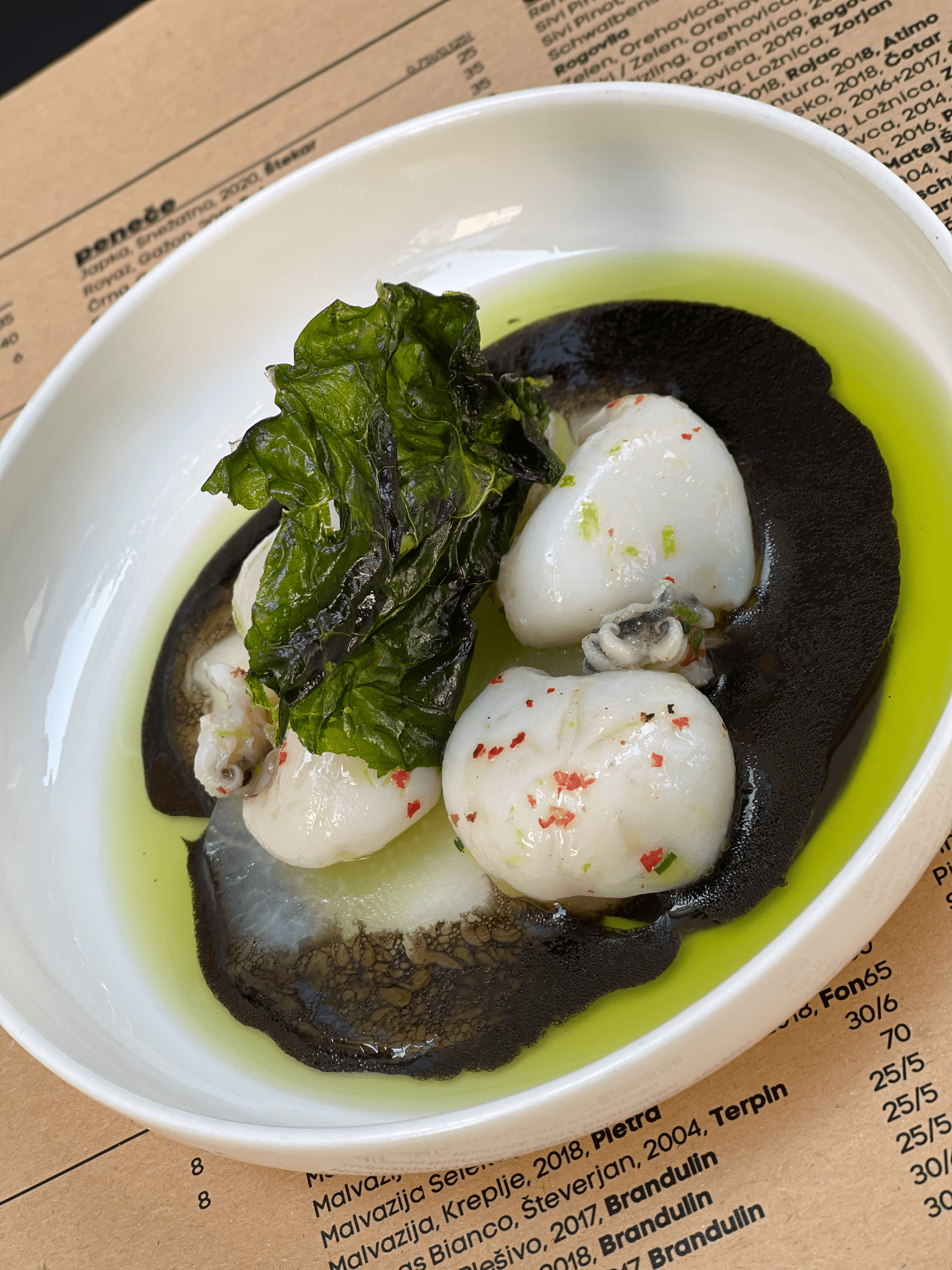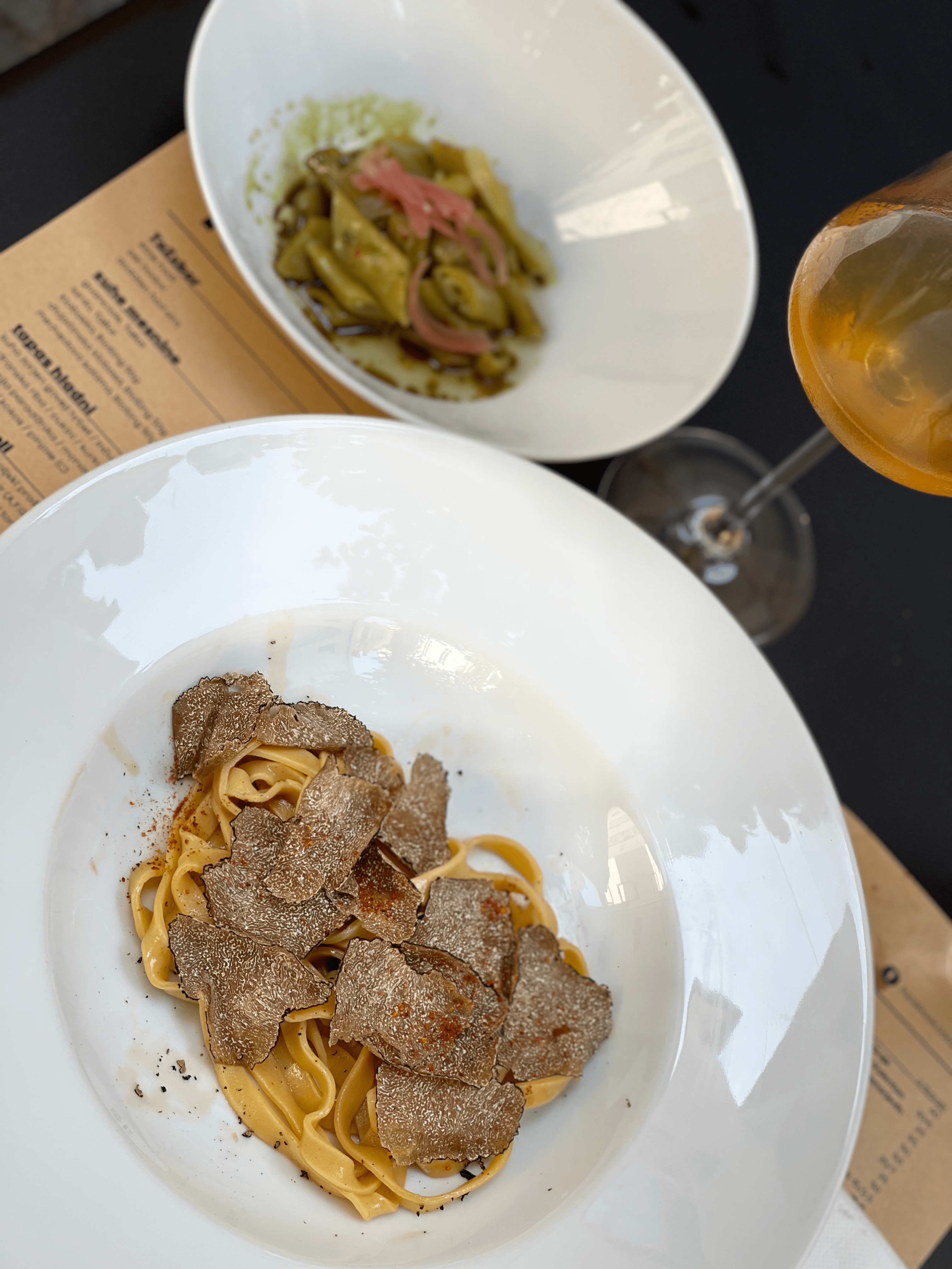 The menu changes weekly, so today, I indulged in their cuttlefish served over slices of overhead kohlrabi with squid tint and oil, which perfectly balanced flavours of the sea with earthiness. The homemade tagliatelle with boar sauce and fresh black truffle was out of this world and perfectly “al dente” and came with a salad in the form of poached green beans. Right when I was thinking: “Boy, this was good, and I’m full!” I couldn’t resist the dessert proposals. So I opted for the white chocolate parfait in hemp seeds served over apricot slices and apricot jus – a heavenly combination making sure I ended in the most pleasing food-coma.
